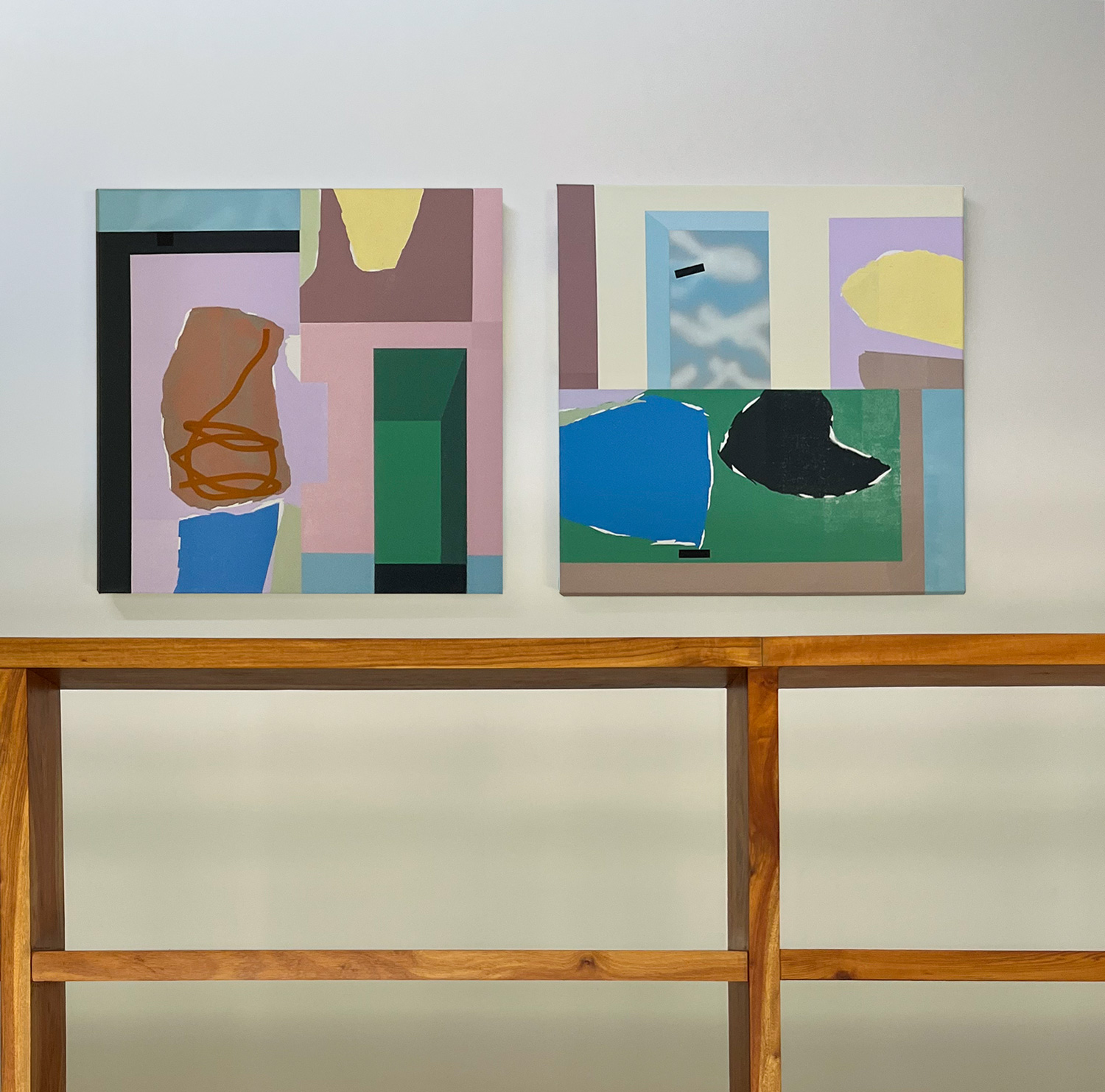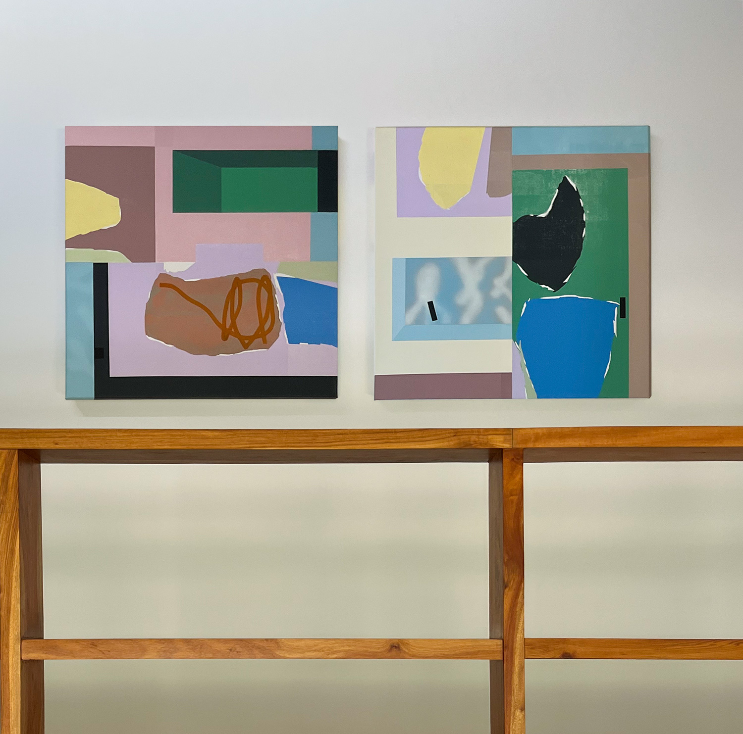 The work unfolds as a diptych, where two distinct yet interrelated panels engage in a visual dialogue. Through the exploration of morphological possibilities, the composition generates multiple combinations. The juxtaposition of the two parts creates a dynamic tension, inviting the viewer to move between harmony and contrast, continuity and disruption.