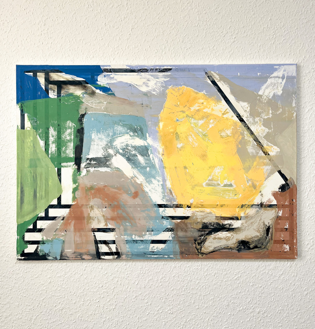 Acrylic, monotype, oil sticks, acrylic marker on linen