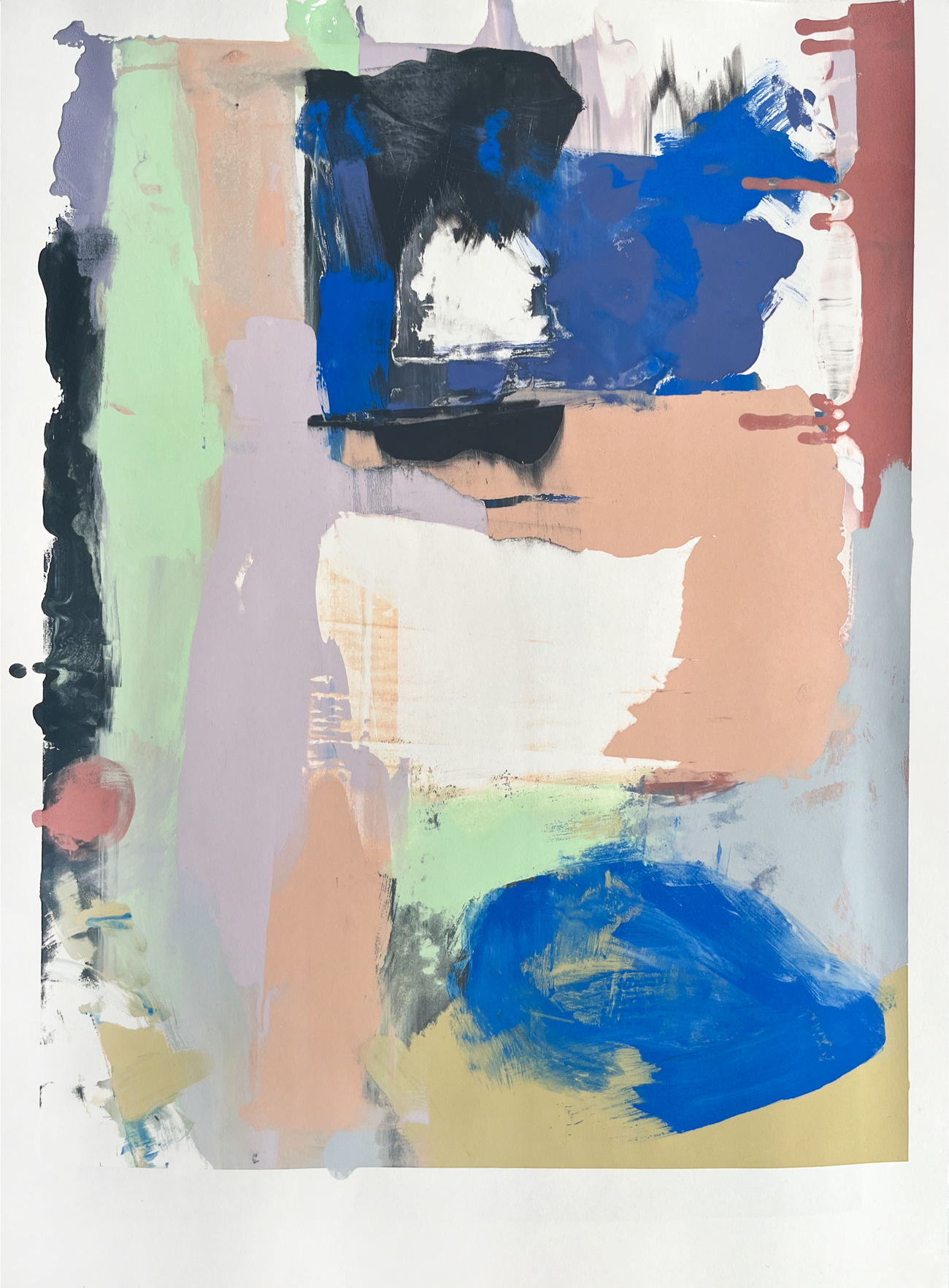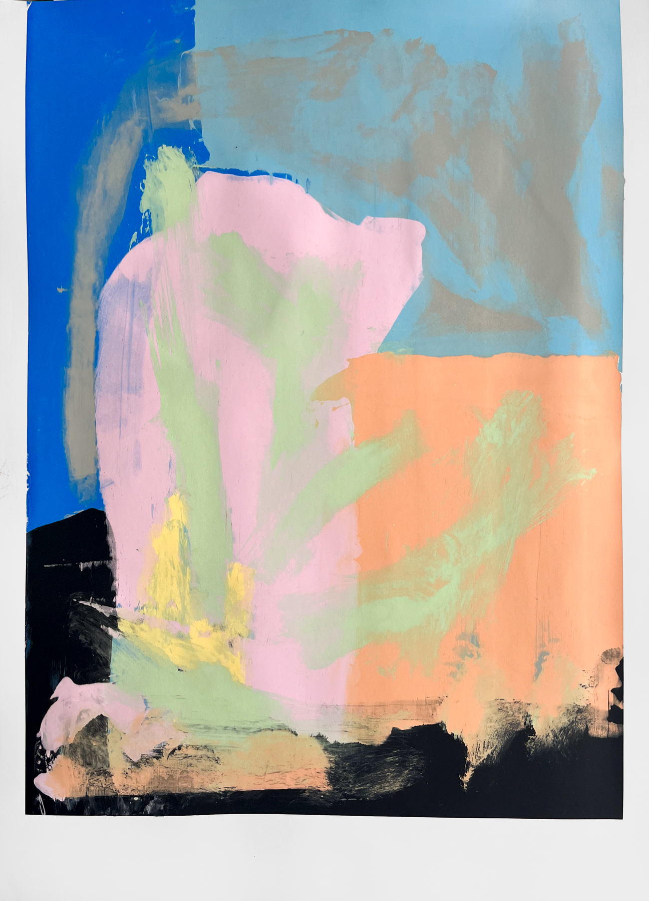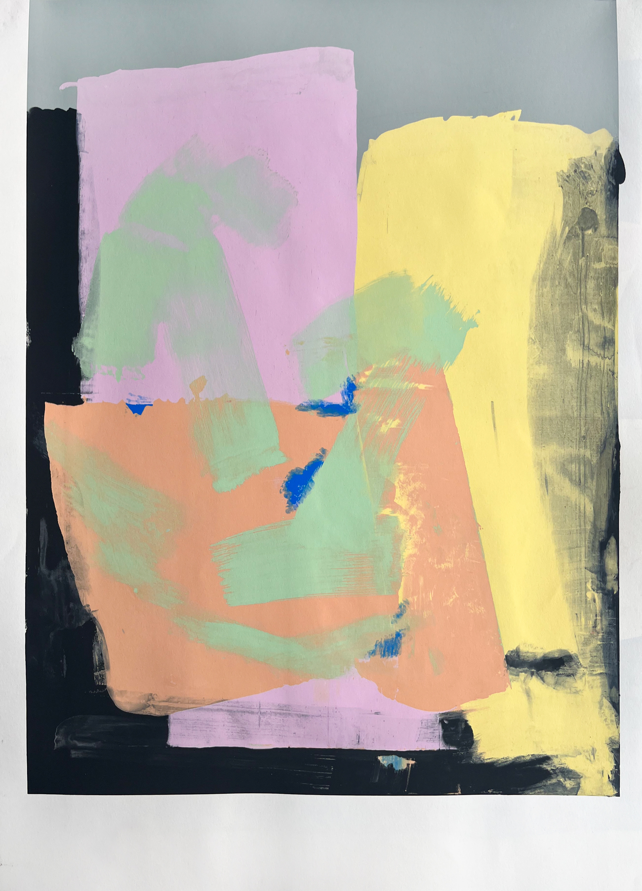 "Monotype is an original work made by applying paint to a screen frame. It is a spontaneous process with unique and unrepeatable results. It's a hand-printed painting".