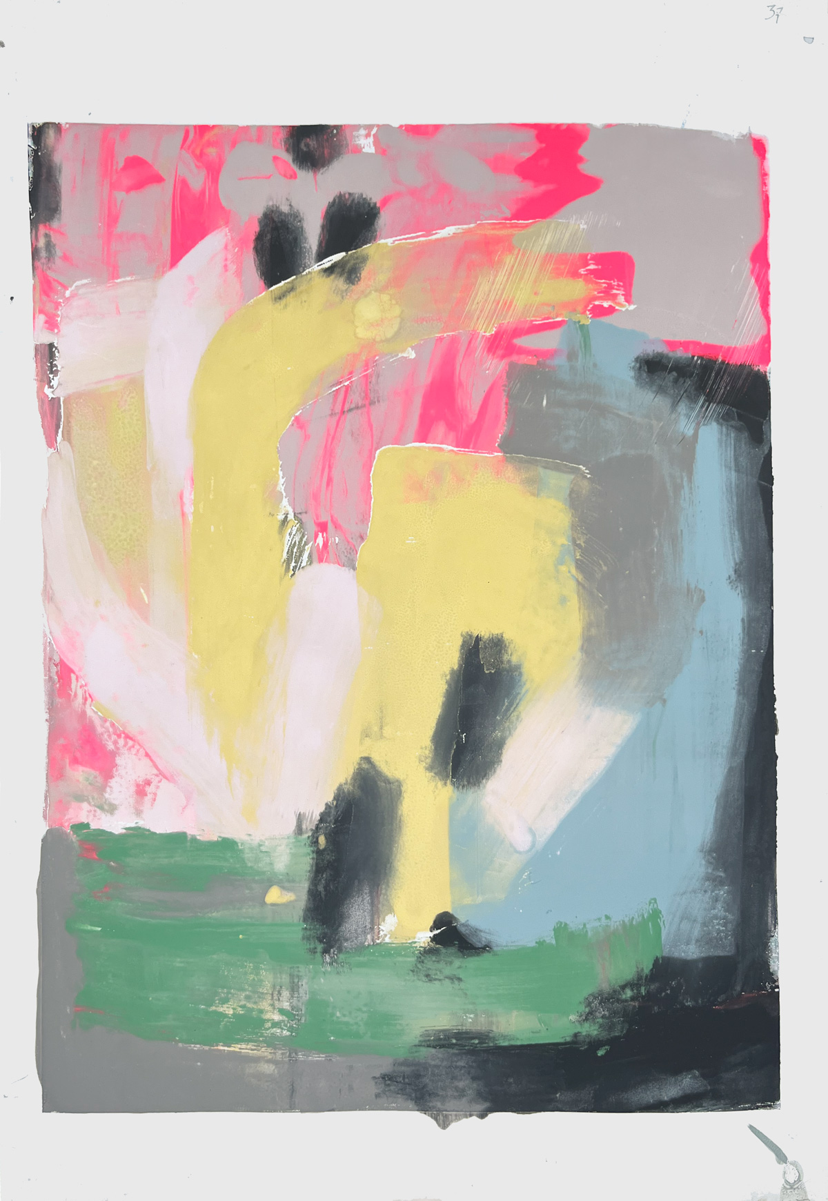 Monotype, acrylic, oil stick, acrylic marker on hardboard.48 x 34 cm.